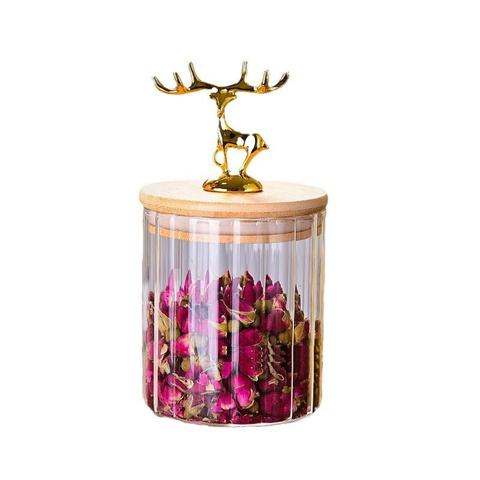 Vente en gros de récipient de stockage alimentaire hermétique personnalisé Oem Odm avec couvercle en bambou wapiti pot de stockage en verre transparent pour cylindre de cuisine