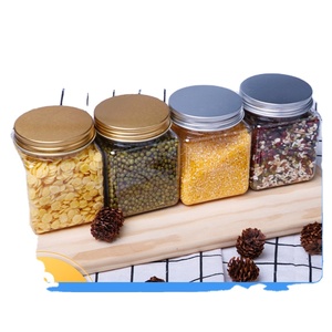 Nouveaux bocaux de stockage en verre alimentaire vides recyclés hermétiques en borosilicate de cuisine carrée unique avec couvercle de cuillère en bois de bambou